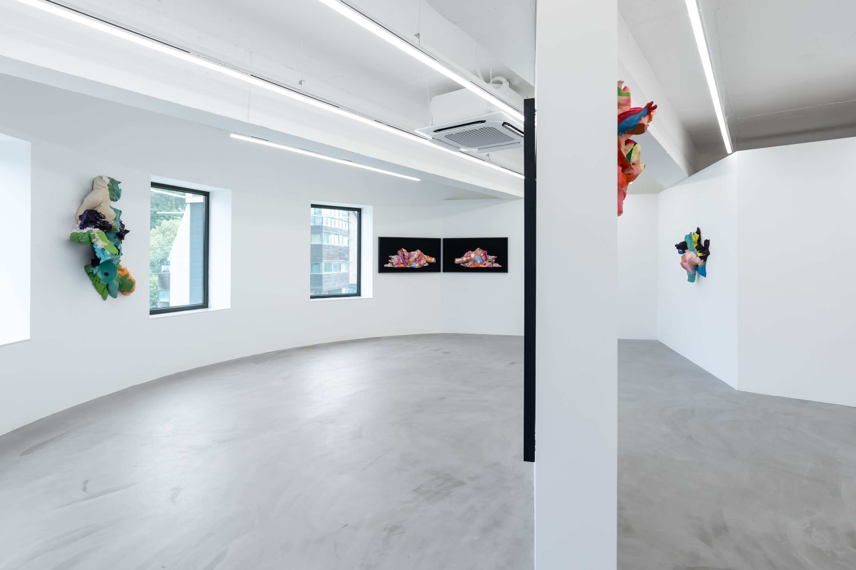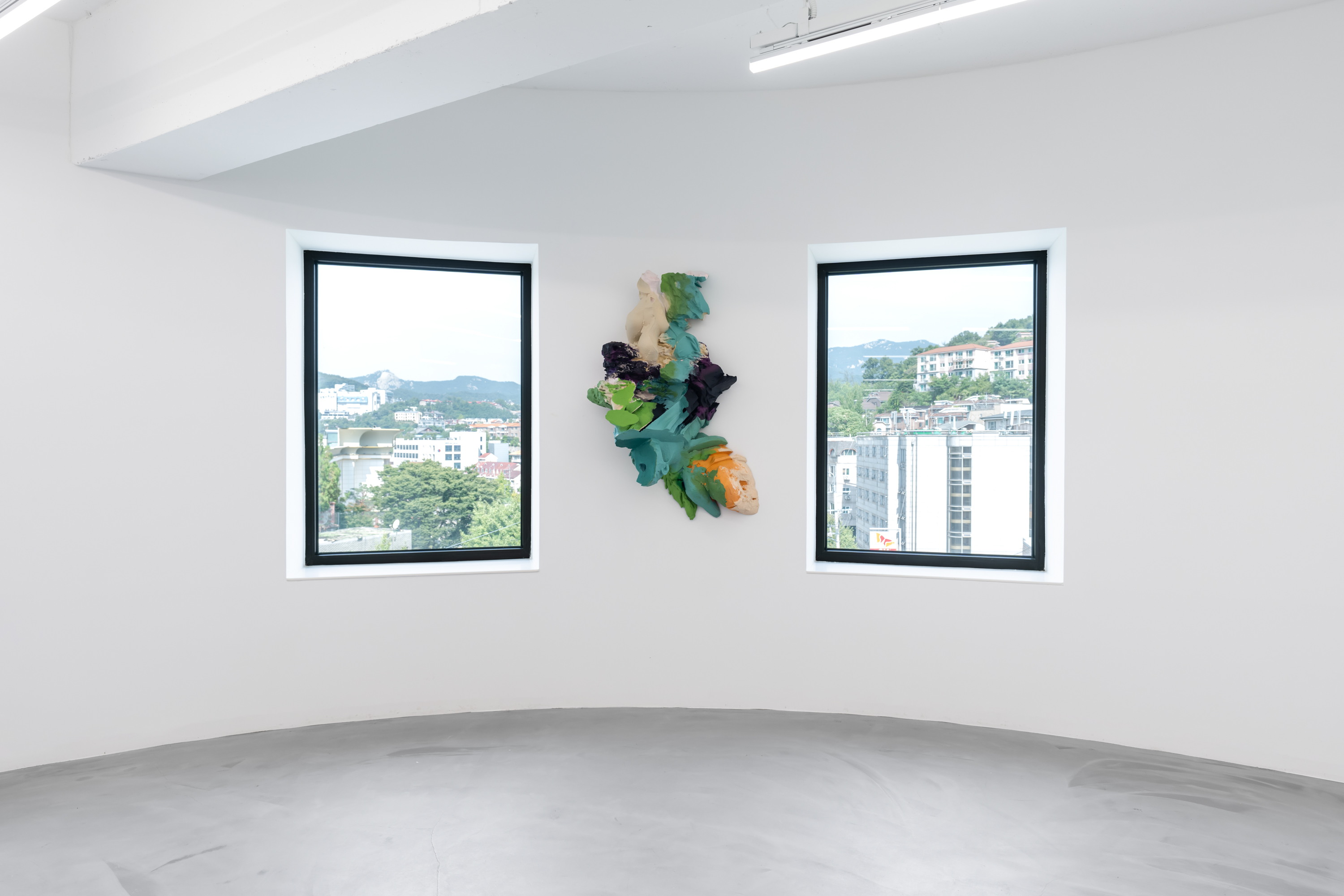 이번 전시 «환상의 빛»의 말미에서 만날 수 있는 대형 부조 작품인 ‹Image Thing›(2025)은 앞서 설명한 ‘지속적으로 변화하는 조각‘이 무엇인지를 명확히 보여줍니다. 작품은 지금의 모습을 갖추기 이전 ‹Eccentric Abattis›(2024)로 존재했습니다. 그러나 약 1년의 시간을 거치며 작품은 동일한 형태만을 흔적으로 남겨두고, 새로운 색과 표현을 동반하는 회화적 실험에 의해 ‹Image Thing›으로 재탄생합니다.